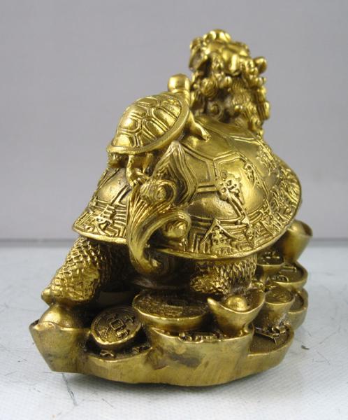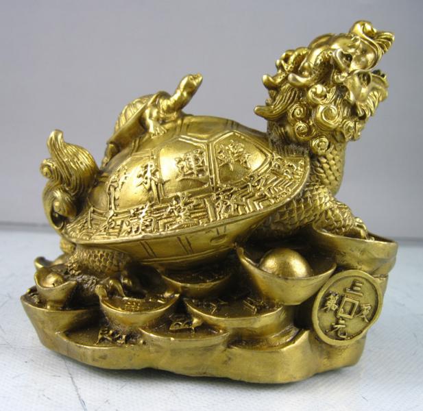 作用:龙龟为解灾化煞、增强人缘、多逢贵人最强之风水宝器。可以摆放在书桌上或者书架中,化解小人,多招贵人。龙龟就是传说中龙的第九子,它有龙头龟身的外形,风水学上有四灵祥瑞,这四灵祥瑞指的是:龙、凤、麒麟、龟,而龙龟是龙和龟的结合物,因此更具有灵瑞之气。龙可以化小人、增加贵人运与人缘,龟代表长寿与健康,还可化阴煞、斗三煞,最重要的还可增加财气。适合放在三煞方,可以化解口舌争端,加强人缘,头要朝内,放在女士床头,可以把老公招回来。其使用方法,一般放在老人的卧室和办公室的写字台上,特别是在工作中如果不顺,受到小人排挤或上司不喜的情况下,择其时日,在办公桌上放一只龙龟,则会得到贵人相帮和上司的赏识,工作上会很顺利,除了在公司摆放之外,同时在家里客庭里也摆放一只,可以相得益彰,发挥更大的作用。 龙龟是传说中龙的九子之一,它有龙头龟身的外形,风水学上有四灵祥瑞,这四灵祥瑞指的是:龙、凤、麒麟、龟,而龙龟是龙和龟的结合物,因此更具有灵瑞之气。龙可以化小人、增加贵人运与人缘,龟代表长寿与健康,还可化阴煞、斗三煞,最重要的还可增加财气。 龙龟亦放在财位,可催财,若放在三煞位或水气较重之地最有效,风水学有云:“要快发,斗三煞”。水气重之风水位主是非口舌,龙龟在位能化口舌兼加强人缘。 龙龟:瑞兽一种,主吉祥招财,化三煞。龙生九子,而龙龟是龙的其中一子。众所周知,龙的力量很强,它是旺财的瑞兽,而龙龟是其子,力量亦偏重于财运方面,摆放龙龟也是可以催财的。龙龟放在财位可催财,放在三煞位或水汽较重的地方最有效,龙龟在位能化解口舌争端兼加强人缘。