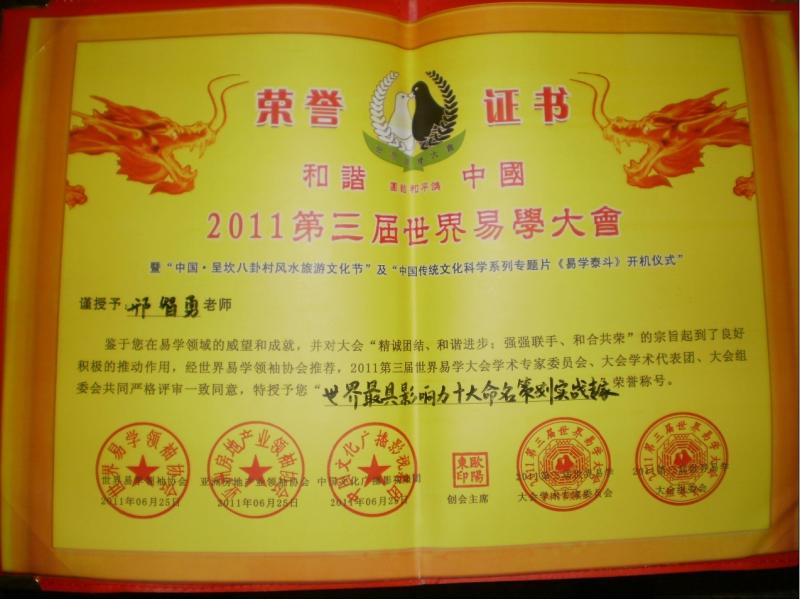 世界最具影响力十大命名策划实战专家 ,2011第三届世界易学大会